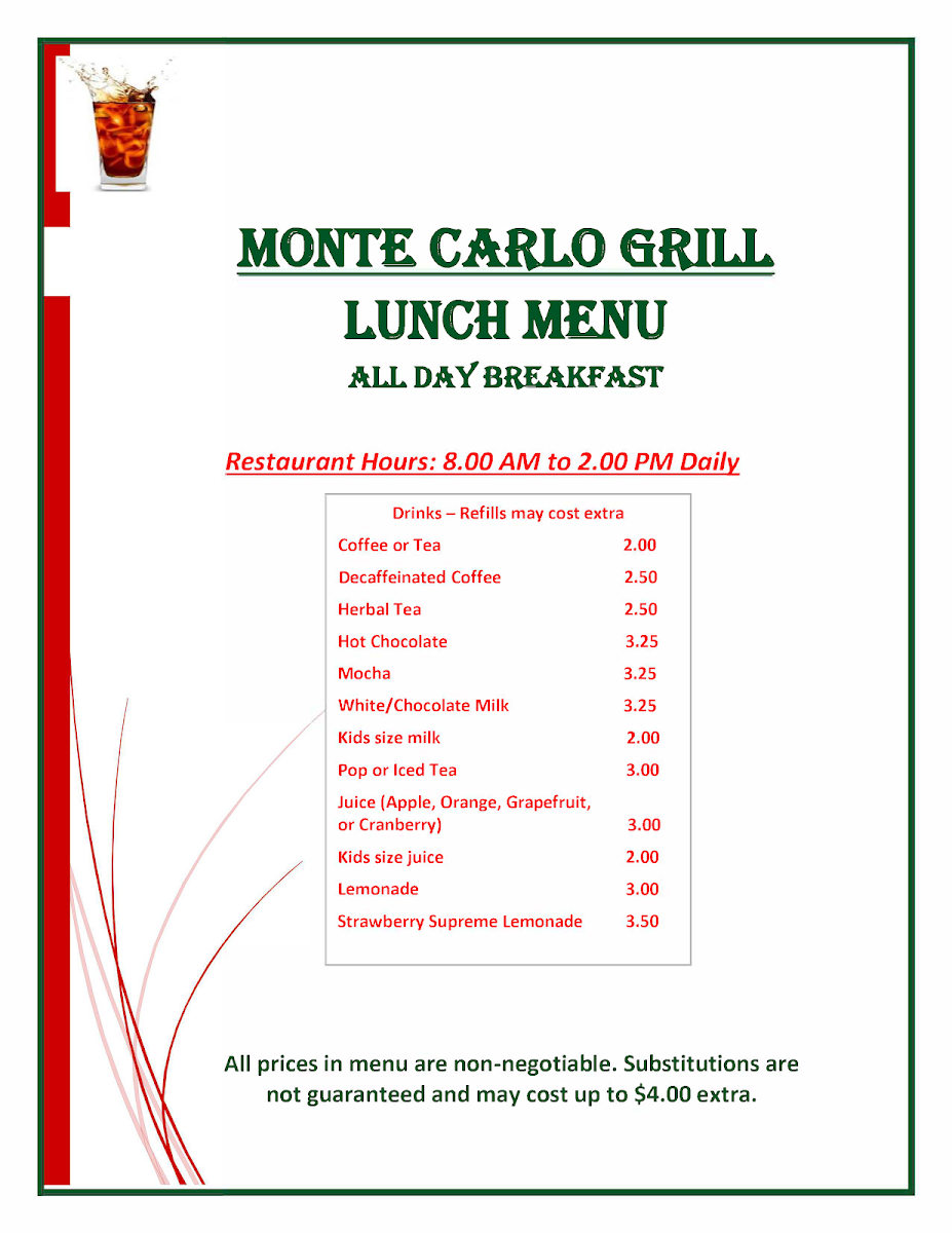 With friendly service and reasonable prices, Monte Carlo Grill & Pizza promises a memorable dining experience where every dish looks as good as it tastes. Don't miss out on this culinary gem!